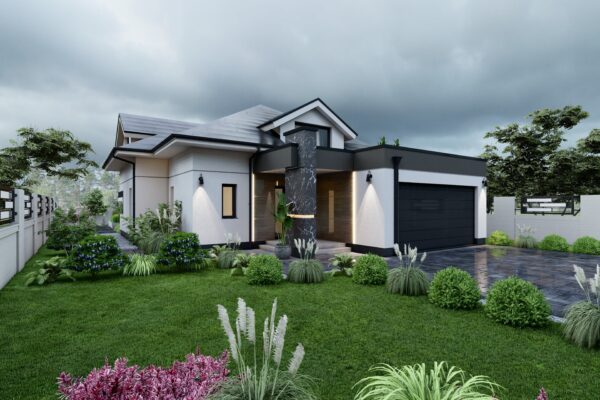Moderna porodična kuća savremenog arhitektonskog izraza, projektovana s naglaskom na funkcionalnost, estetiku i udobnost stanovanja. Objekat karakteriše kombinacija čiste bijele…