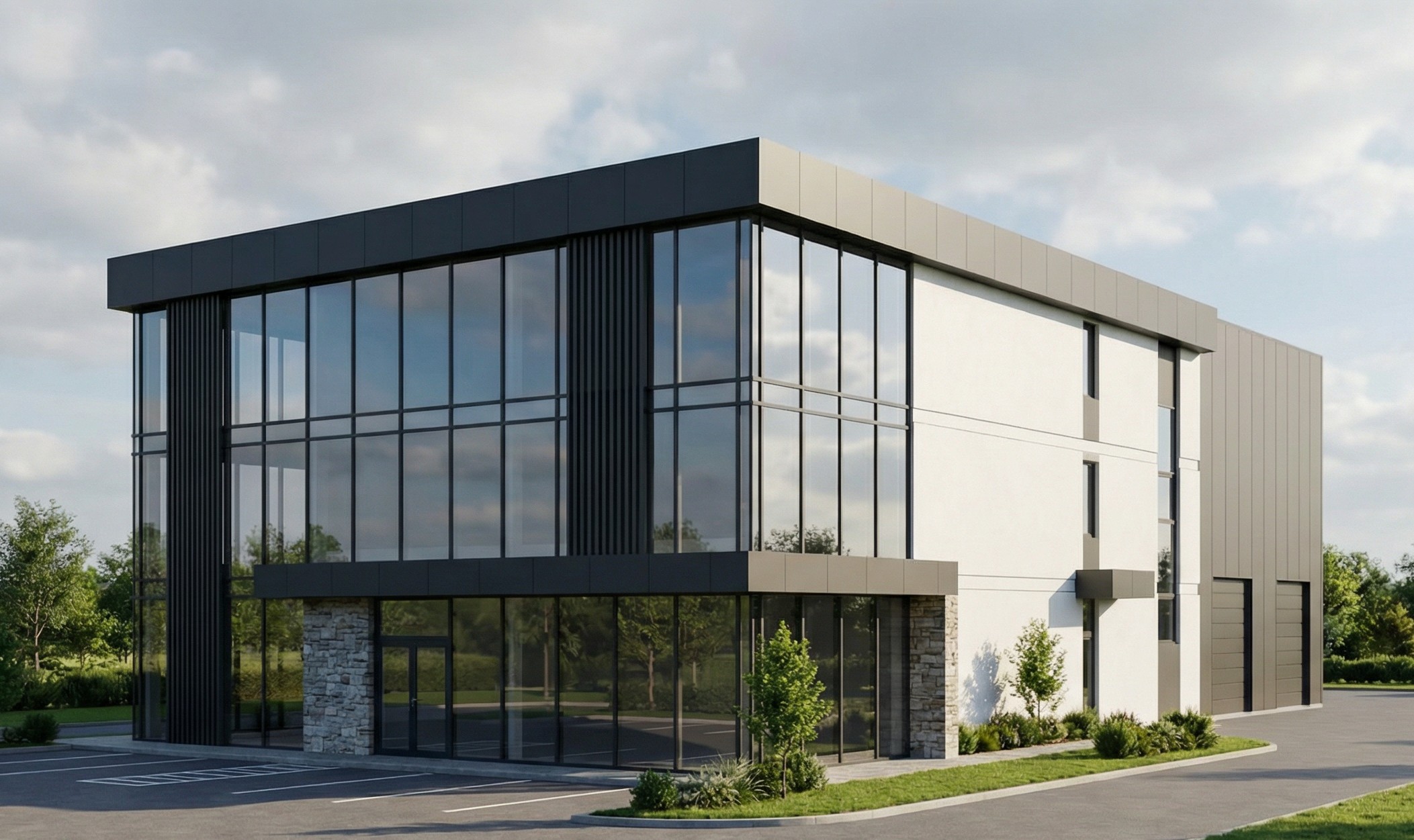 Poslovni objekat dizajniran je s fokusom na funkcionalnost, fleksibilnost i moderan vizuelni identitet. Velike staklene fasade i transparentnost prostora, dok kombinacija modernih materijala naglašava profesionalan i reprezentativan karakter objekta. Idealan je za kancelarijske, administrativne ili komercijalne namjene u savremenom poslovnom okruženju.